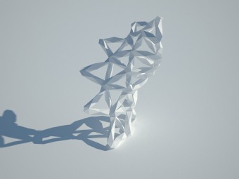 This experiment aimed at developing a three dimensional object, the choice was made on the development of a spiral structure exploiting the full potential of the method. The final draft suggests that such methods would be used for temporary architectures, and leaves the door open to future developments.