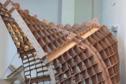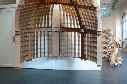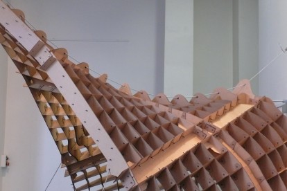 «Textile Tectonics, I call this the Semperian reversal: the reversal of the order of the four elements. Instead of starting with earth and a wooden frame to support the weaker textile fibers, I reason the other way around: weak threads move, find each other, and lock into each other, building structure and rigidity. So instead of adding the soft to the rigid, as Semper did, we see a transformation of soft into rigid.