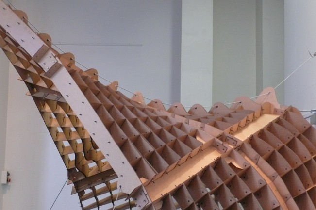 Ce projet interroge la manière dont les technologies numériques de conception et de fabrication peuvent amener à repenser la tectonique traditionnelle, notamment celle théorisée pour l'architecture gothique par Viollet-le-Duc. La notion de système est actualisée à travers l'usage de l'informatique pour redéfinir les éléments qui composent l'architecture et la manière dont ils sont articulés. Plutôt qu'une conception par agrégation destinée à lutter contre la gravité, nous employons une méthode de différentiation de la matière au sein même de sa géométrie. La pensée constructive qui découle de cette opération de conception est donc intrinsèquement liée aux choix géométriques - qui en permettent l’expression – à la manière du Gothique. La modélisation paramétrique permet d’ajuster la géométrie spatiale à la forme constructive et inversement.